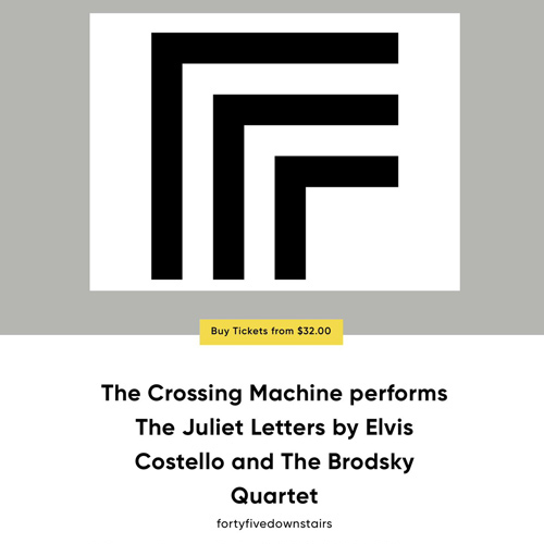 Melbourne string quartet The Crossing Machine (violinists Marianne Rothschild and Matthew Rigby, violist Margaret Butcher and cellist Charlotte Jacke) will be joined by vocalist Jordan Z to perform The Juliet Letters, the genre-defying song cycle created by Elvis Costello in collaboration with The Brodsky Quartet. Originally released in 1993, The Juliet Letters is a sequence of letters written to Shakespeare’s Juliet, revealing a gallery of fractured lives, longing, regret, and dark wit. Since beginning this project in 2018, The Crossing Machine has been breathing new life into the work, approaching it with deep respect for the score while bringing a distinctly contemporary energy and emotional clarity.